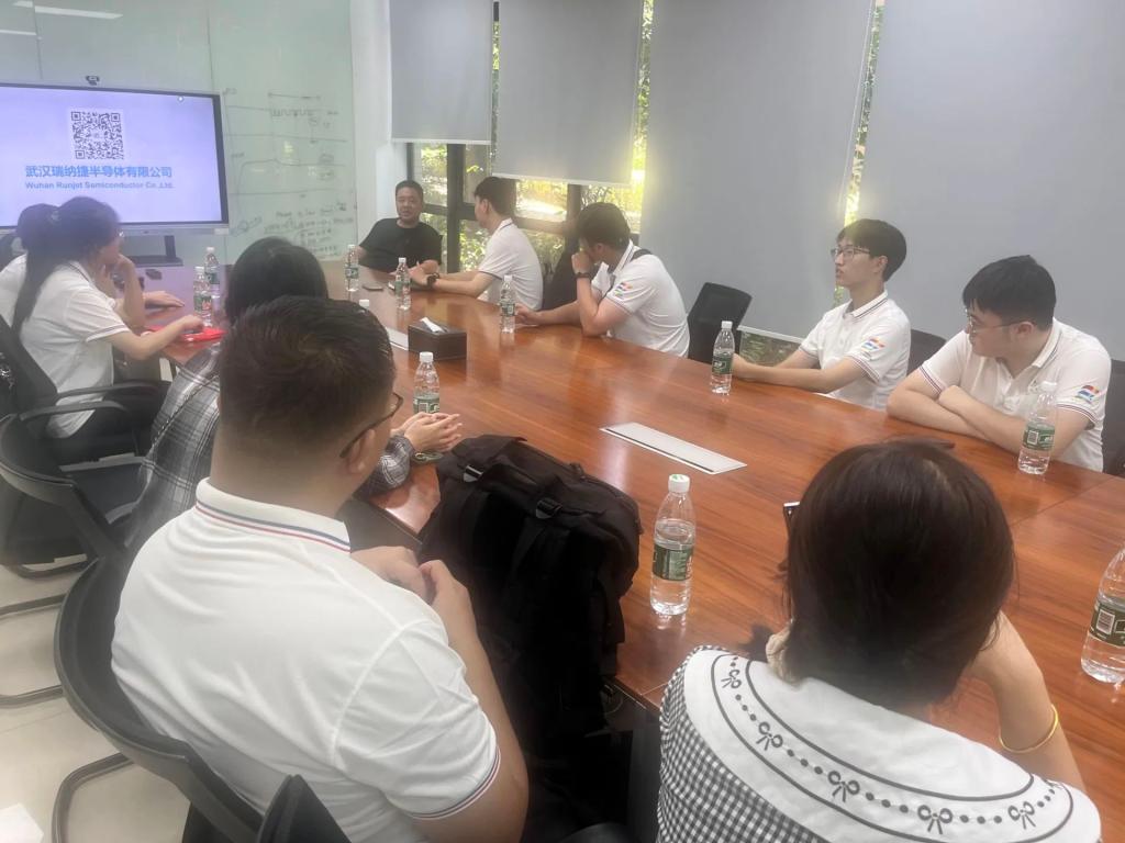 为强化国家战略引领,持续聚焦校企合作新模式,进一步落实访企拓岗要求,培养具备创新精神和实践能力的时代“芯”人,引导员工感受行业现状,了解就业形势,提升求职能力,7月31日,时代“芯”人暑期社会实践团队在公司党委副书记田务民,辅导员黄山、康晶的带领下,前往武汉瑞纳捷半导体公司走访参观。