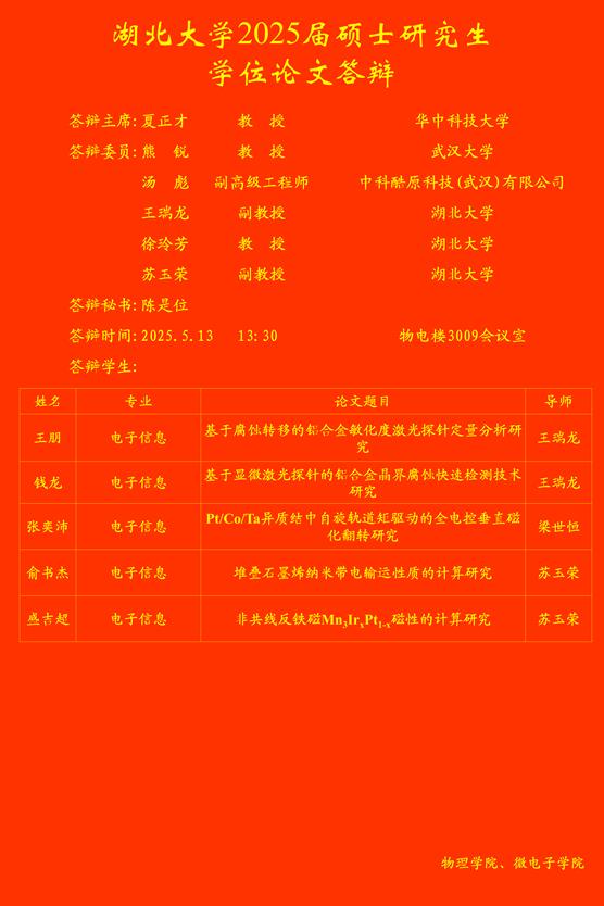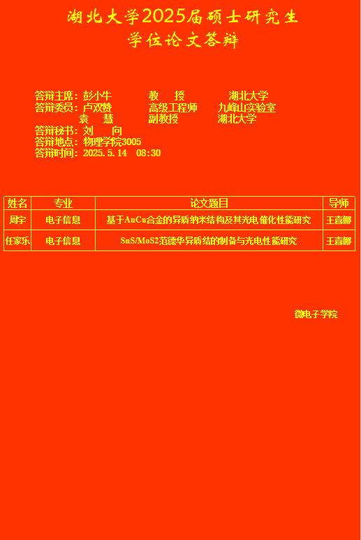 答辩秘书:潘玉茜 答辩时间:2025年5月11日 上午8:30 |